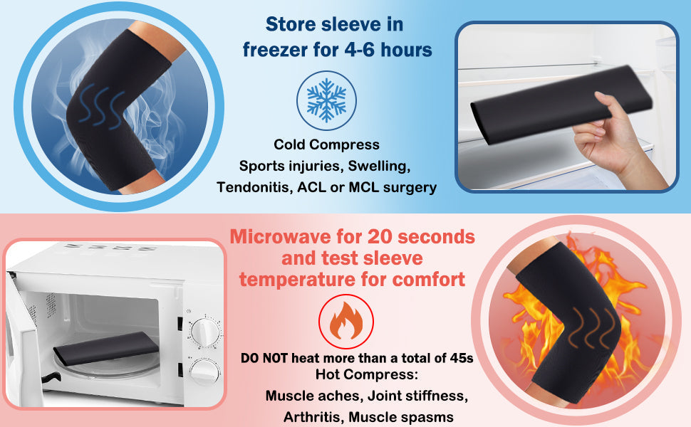 Almohadillas de gel frío-calor con compresión integrada y diseño deslizante. Desarrolladas con médicos y fisioterapeutas para aliviar inflamación, inflamación, esguinces, epicondilitis (codo de tenista), osteoartritis y más.